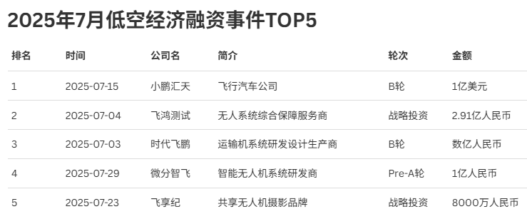 7月低空经济投融资演讲:总额2994亿元创单月融资
