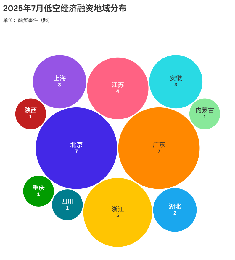 2025年7月,低空经济融资地区款式清晰。、广东以7起融资事务并列领跑,科创生态完美等劣势,成为低空经济本钱高地,持续吸引立异项目取资金流入,引领行业成长标的目的。浙江以5起紧随其后,江苏4起、上海和安徽各3起,展示出长三角区域正在低空经济赛道的协同发力,财产配套、人才储蓄等协同劣势,湖北2起,陕西、沉庆、四川、各1起,表现多地积极参取,虽融资规模暂有差别,但通过特色财产切入、政策搀扶等,为低空经济区域化成长注入多元活力,估计后续头部区域带动、多地互补的款式,将帮推低空经济财产生态加快成型。